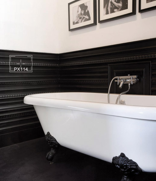 Repare-se no pormenor de um quarto de banho com um toque Orac Decor. Materiais resitente a àgua e humidades, que aceitam qualquer tipo de tintas ( de àgua ou dissolventes). Permite ao decorador uma maior liberdade na hora de eleger cores ou tipo de pintura.