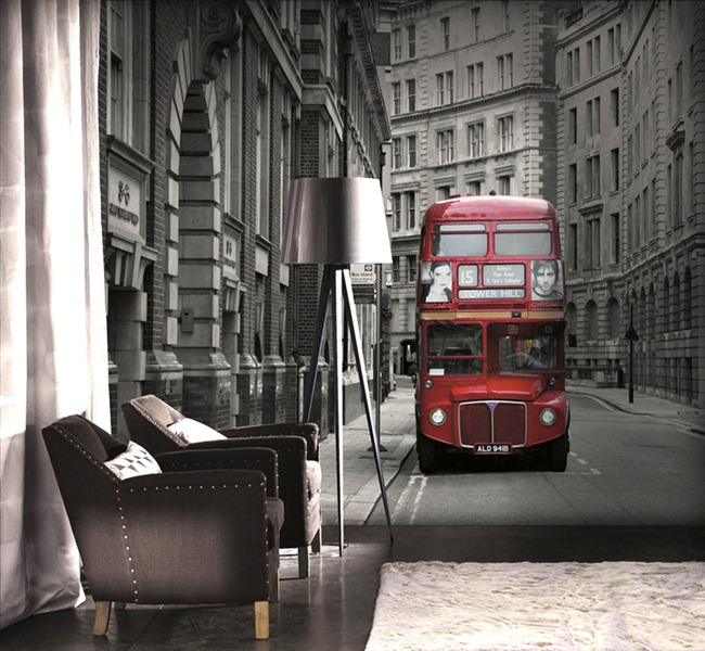 Papeldeparedeonline.com apresenta um super mural dos míticos autocarros londrinos.