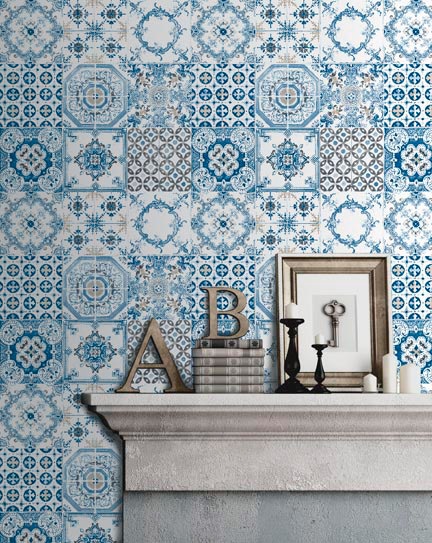 Um papel de parede a imitar os azulejos típicos portugueses, ideal para uma casa com uma decoração rústica e tradicional. Este padrão está disponível em 3 cores, o azul o castanho e o preto.