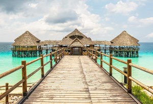 Bar and cafe on water in Zanzibar, Tanzania