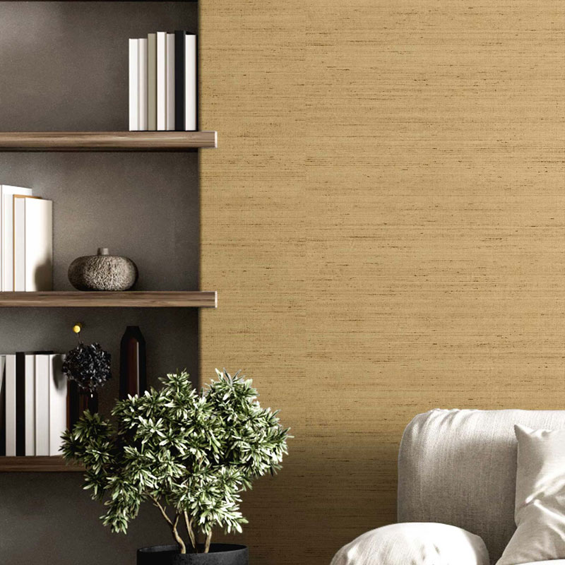 O papel de parede textura de linho traz um toque natural e aconchegante aos ambientes. Sua textura sutil imita a aparência do tecido linho com seu tramado natural e sutil, adicionando uma aparencia elegante e de interesse visual às paredes. Veja na foto abaixo uma decoração de luxo com papel de parede linho texturizado e folhagens texturas da mesma coleção, uma composição de bom gosto e harmonia para o ambiente.