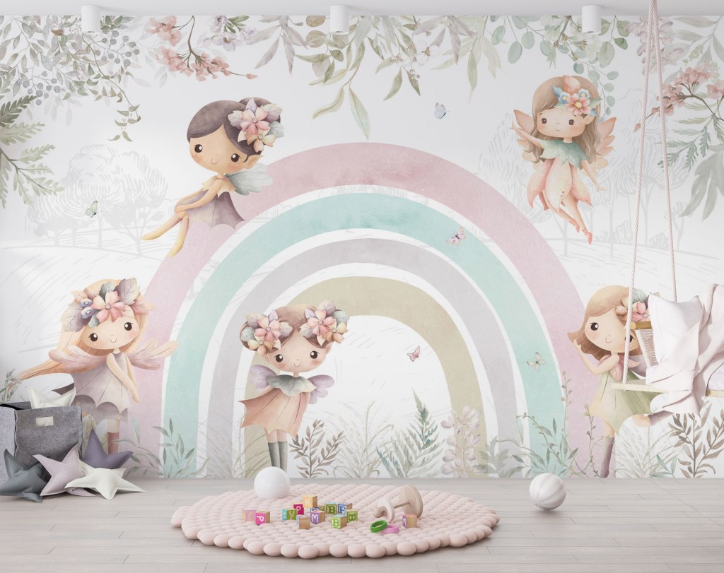 A decoração das paredes do quarto das crianças pode transformar o dormitório infantil num lugar dos sonhos para os mais pequenos da casa, onde terá lindos momentos que ficaram guardados na memória por toda a vida, os pequenos detalhes fazem a diferença e a decoração do ambiente agrega valor afetivo e inesquecível de uma infância feliz! Neste mural com lindas fadinhas e arco-íris, os tons suaves como rosa, lilás, verde menta e bege claro ajudam a criar um ambiente sereno e mágico tão importante para esta fase inicial da vida, na loja papel pintado online estamos sempre pensando em realizar sonhos e fazer com que nossos clientes adultos ou crianças possam disfrutar de uma decoração como sempre sonharam.