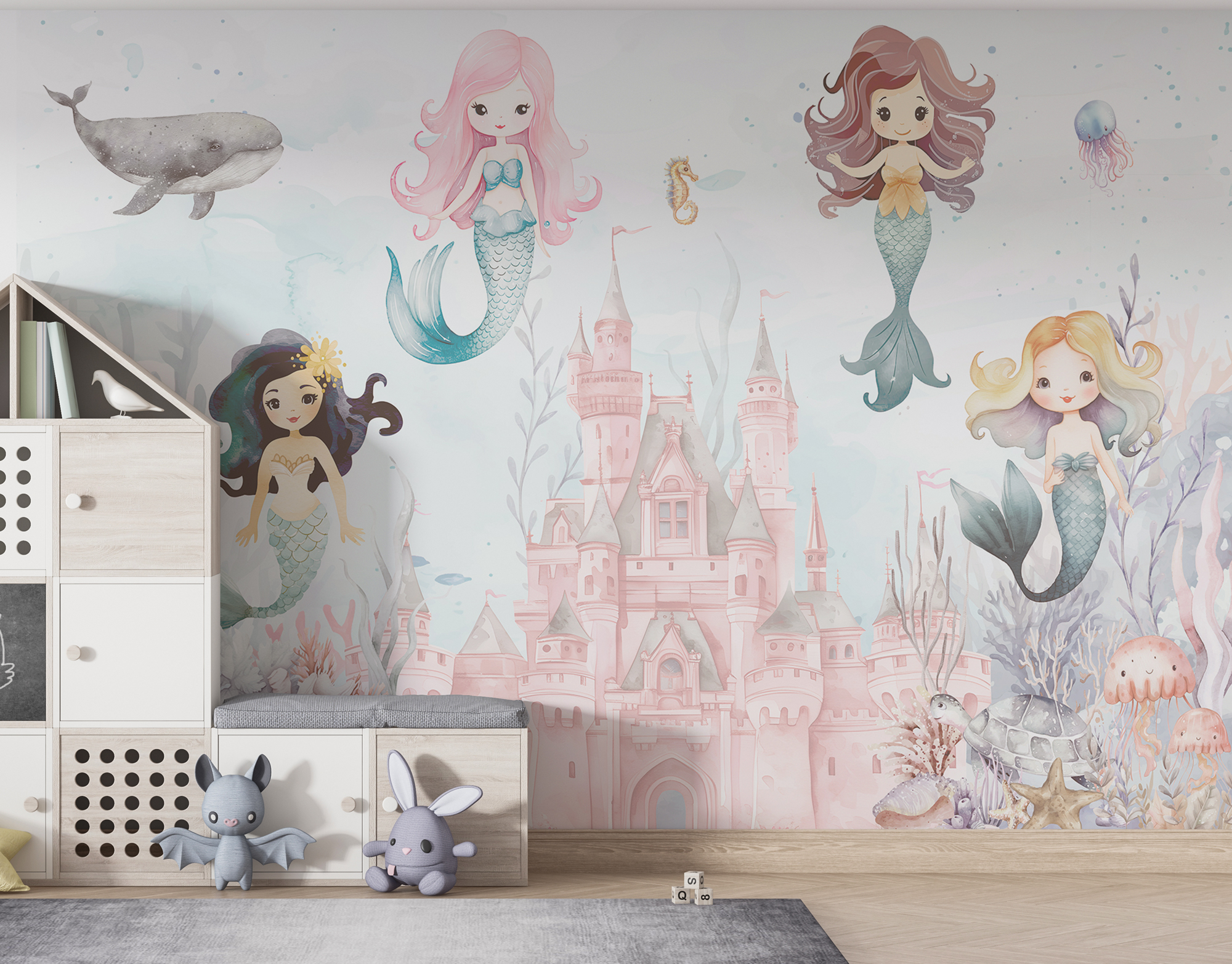 A sereia está no imaginário das crianças e também dos adultos com todo o mistério, encanto e curiosidade que desperta em aprofundar nas descobertas do fundo do mar, em papel pintado online temos opções de mural para decoração infantil com desenho de sereias que é puro encanto.
