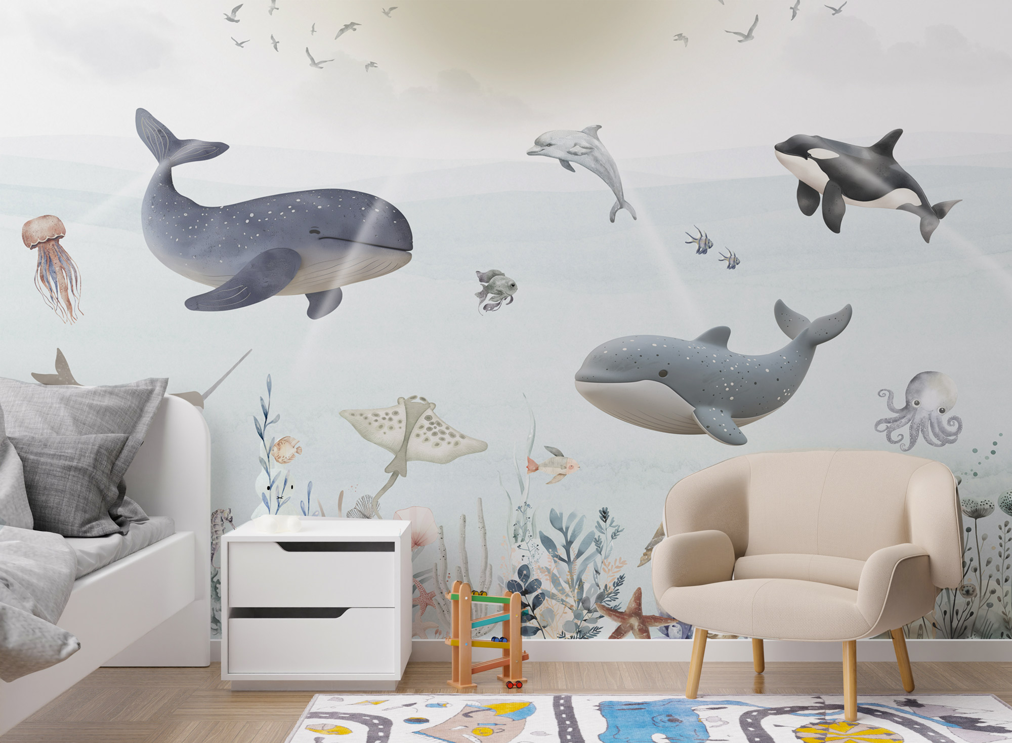 Decorar um quarto infantil é um momento de descontração, de usar a imaginação e colocar todo o carinho para realizar um projeto especial para seus filhos. Cada detalhe conta para criar um espaço que seja ao mesmo tempo funcional e encantador, onde a criança se sinta segura e feliz. Veja que quarto mais charmoso na foto acima com o painel fundo do mar da loja papel pintaodo online.