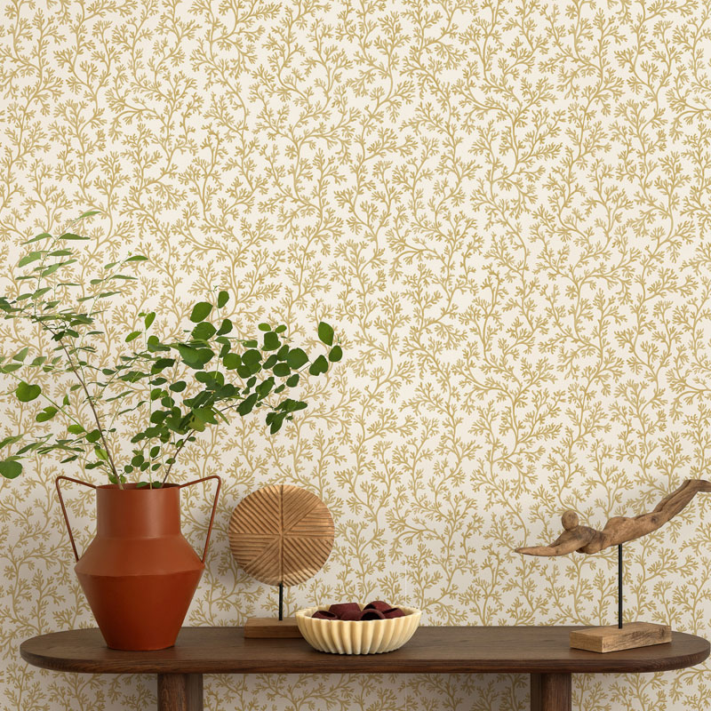 Ao optar por estampas de natureza marinha, a escolha das cores é fundamental para harmonizar com o estilo de decoração do ambiente, se deseja uma parede destacada com todo o protagonismo e beleza recomendamos um fundo azul marcante com o desenho de corais e animais marinhos lindíssimo e espalhados por esta paisagem aquática, encontram-se elementos dourados luminosos: conchas cintilantes, corais dourados que captam a luz como raios de sol que atravessam a água. O mobiliário em madeira clara e despojado complementa este moderno ambiente cheio de encanto. Para adquirir este modelo de papel de parede com entrega em 48 horas em nossa loja online clique na legenda da foto.