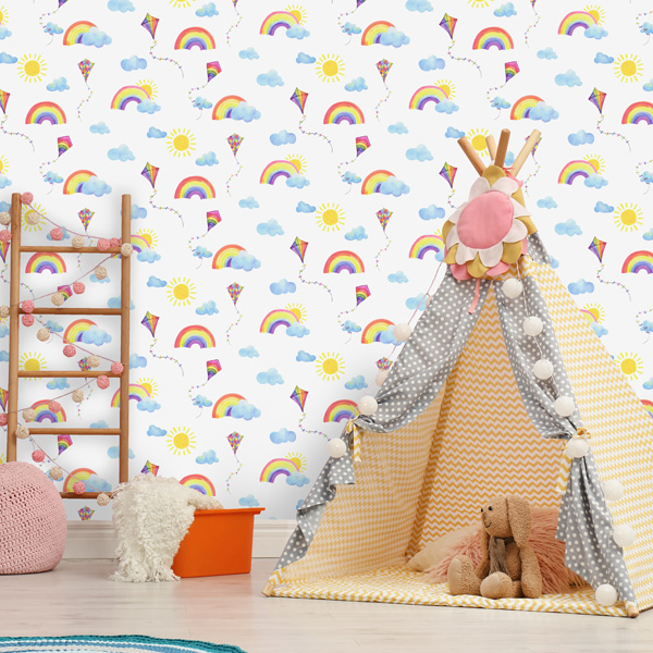A decoração interior infantil com papel de parede está conquistando cada dia mais espaço no mercado e com isto novos productos e design de papel de parede estão surgindo para valorizar ainda mais os ambientes infantis, nas fotos interiores abaixo podemos ver uma das lindas opções de design infantil com desenhos de arco íris estilizados com padrões modernizados e com opções de cores para combinar com os móveis e adornos de decoração infantil, além de dar um toque de protagonismo e beleza nas paredes os papéis da coleção Dream catcher tem cores suaves que não cansam e estão desenhadas pensando na comodidade das crianças.