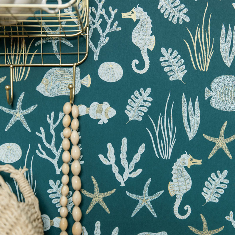 Na loja papel pintado online você encontrará a inspiração que busca para decorar com a nova coleção de papéis Seaside que capturam a essência do oceano e com tons e formas que remetem ao fundo do mar, além de criar um clima acolhedor e inspirador em qualquer ambiente. Para facilitar a escolha, selecionamos uma estampa para cada ambiente, detalhando como ela pode ser combinada com móveis e acessórios.