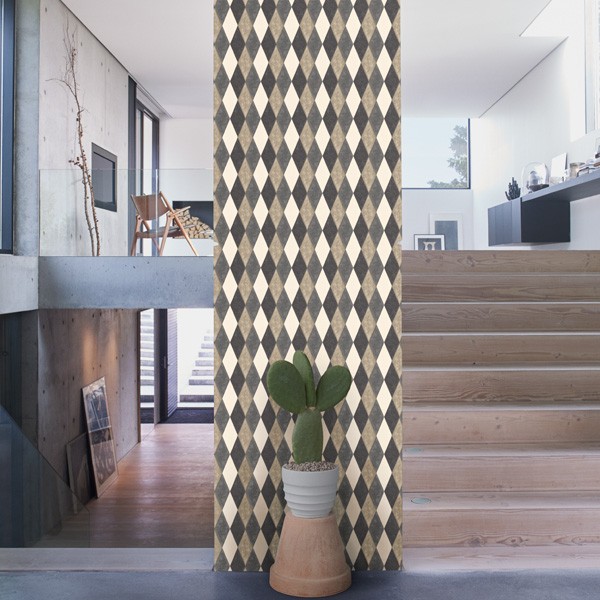 O papel de parede desenho diamante cinza e dourado 35540 da coleção Ritus apresenta um design geométrico em tons de cinza e dourado com suave relevo perfeito para salas de jantar que buscam um estilo contemporâneo e sofisticado. Sua textura metálica reflete a luz de maneira sutil, criando um ambiente acolhedor e ao mesmo tempo sofisticado.