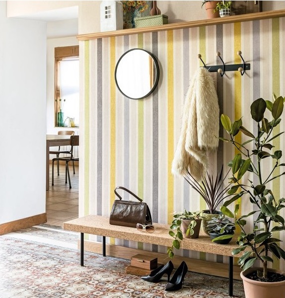 Se a ideia para decorar é criar um efeito marcante e chic, você pode usar papéis de parede em preto ou azul escuro com detalhes em dourado ou prateado. Já um modelo de papel de parede com fundo claro com formas geométricas douradas, por exemplo, pode ser uma ótima maneira de dar vida a uma parede sem sobrecarregar o ambiente, tudo isto você encontra na web de papel pintado online.