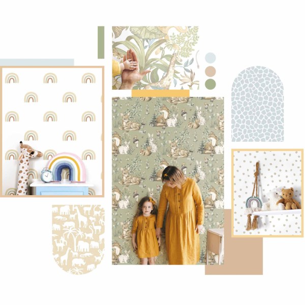 Os papéis de parede infantis da coleção ONCE UPON A TIME não apenas embelezam o ambiente, mas também conectam as crianças com o mundo ao seu redor e deixam o ambiente mais alegre e especial.