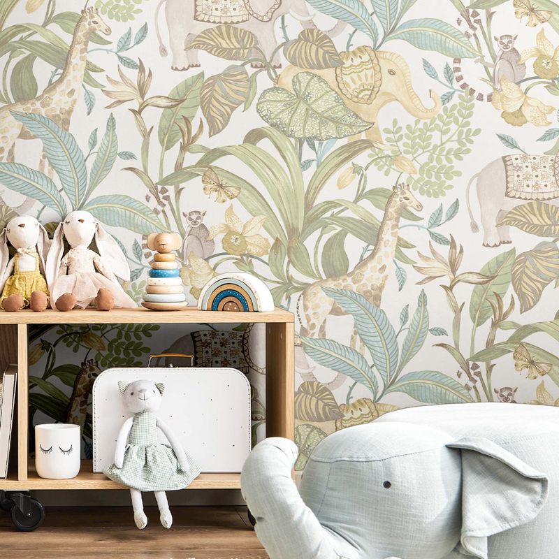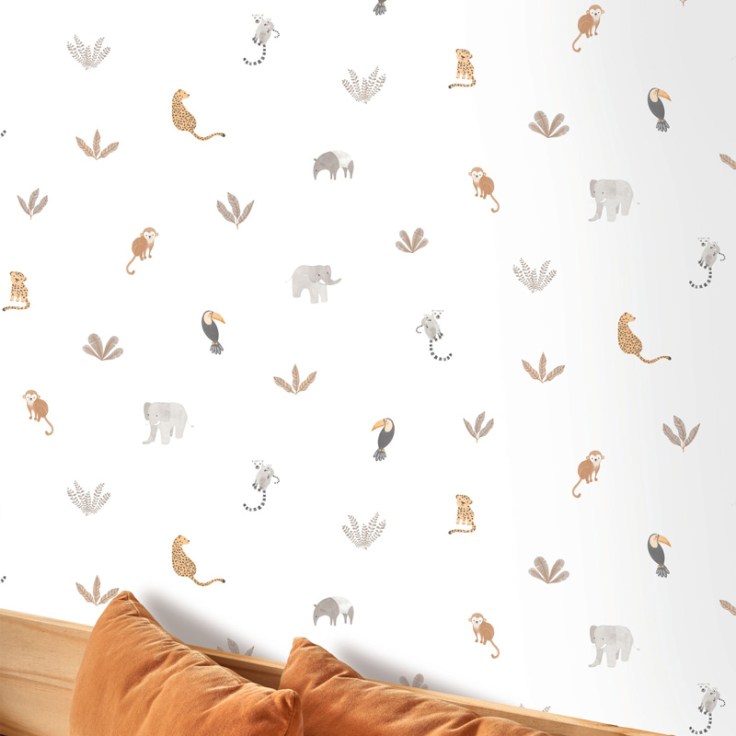 Papel de parede infantil animais da Selva tropical
