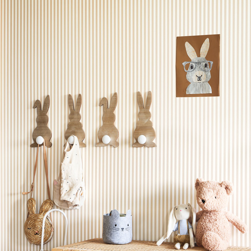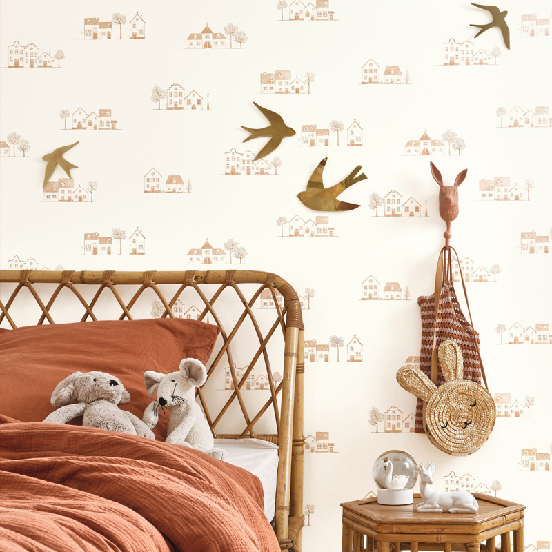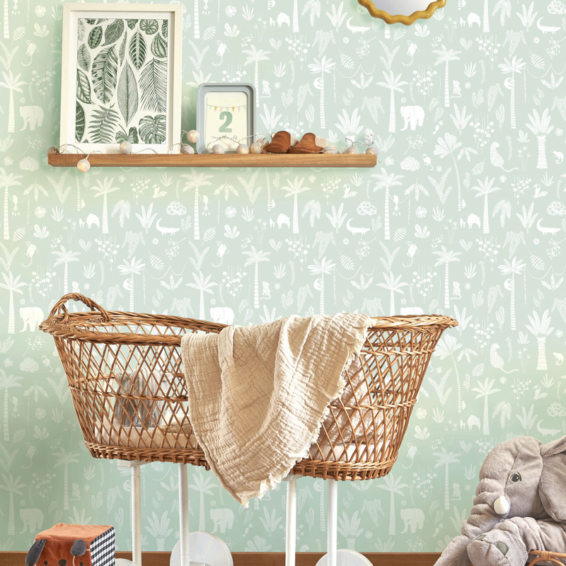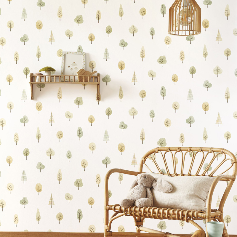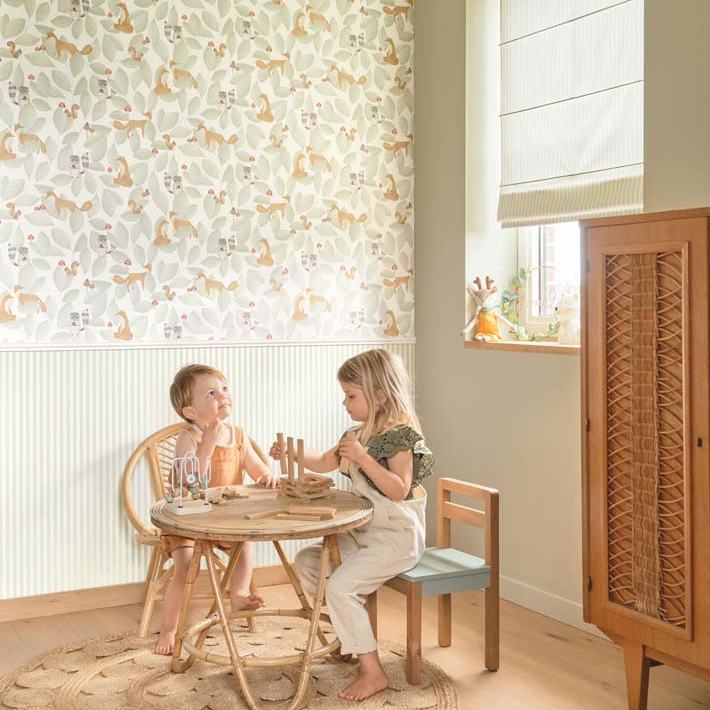 Para combinar com os papéis de parede infantis da loja papel pintado online, a escolha dos móveis infantis também faz a diferença na decoração do quarto. O móveis de madeira, o rattan, o bambu e o lino são materiais que continuam em alta na decoração infantil. Esses materiais trazem aconchego e autenticidade ao ambiente. Ao combinar esses elementos com os papéis de parede da coleção “Once Upon a Time 2”, é possível criar um quarto infantil que seja ao mesmo tempo moderno e acolhedor, veja abaixo ideias de móveis infantis e papéis de parede combinados: