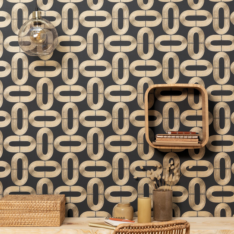 Se a ideia para decorar é criar um efeito marcante e chic, você pode usar papéis de parede em preto ou azul escuro com detalhes em dourado ou prateado. Já um modelo de papel de parede com fundo claro com formas geométricas douradas, por exemplo, pode ser uma ótima maneira de dar vida a uma parede sem sobrecarregar o ambiente, tudo isto você encontra na web de papel pintado online.
