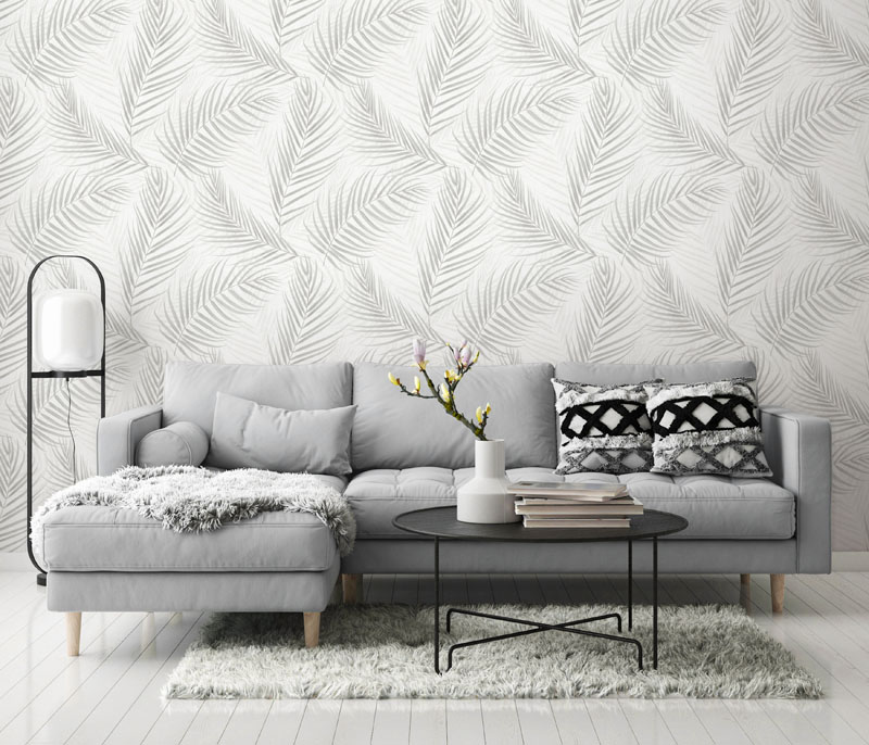 Para decorar a sala de estar, aposte também numa das estampas em tonalidades areia, taupe ou cinza claro que trazem uma atmosfera contemporânea sem pesar. Combine com papéis de parede lisos com textura linho em tons complementares para delimitar áreas e manter a harmonia e o aconchego do ambiente.
