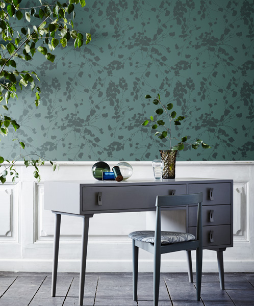 Ao usar papel de parede azul com estampas, uma boa dica seria de usá-lo em para destacar uma parede ao invés de cobrir todas as paredes. Isso evita que o ambiente pareça excessivamente carregado e permite que o design do papel de parede seja o protagonista. Os papéis das fotos acima são: Papel de parede folhage azul elegante e o papel de parede árvores e folhas azuis também disponíveis em stock com entrega rápida.