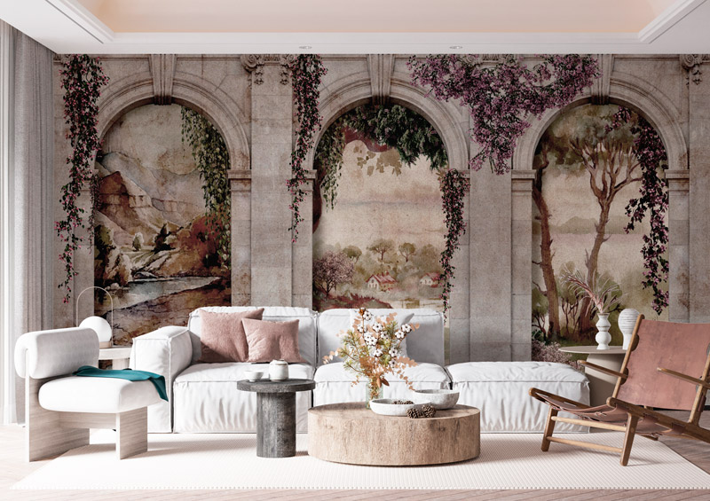 Está em busca de ideias para decoração da sala de estar? em nossa loja papel pintado online temos várias propostas que vão mudar o visual do interior da casa com beleza, qualidade e destaque, conheça os novos paineis decorativos non woven como este desenho conhecido como mural decorativo casa Lima que é um desenho que mudará completamente o layout do ambientes incluido a natureza e uma obra arquitetônica clássica no mesmo produto, o efeito visual parece retirado de um antigo jardim dos palacetes europeus, a sala tem uma decoração com mobiliário contemporâneo elegante e sóbrio, um ambiente mais aconchegante e diferenciado para receber suas visitas.