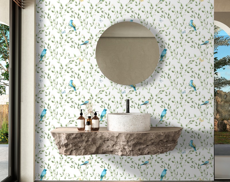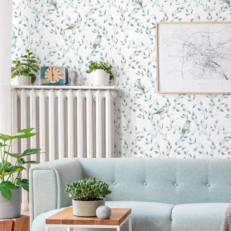 Para um espaço onde você recebe visitas e passa momentos de descontração, recomendamos os desenhos florais ou botânicos que adicionam frescor e relaxamento com um toque alegre ao ambiente, Se preferir um clima mais aconchegante, o papel de parede com imitação madeira combinado com a estampa floras também é uma excelente escolha.