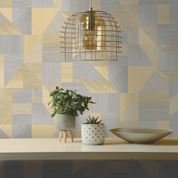 Uma opção de papel de parede geométrico com entrega em 24-48 horas é o papel de parede geométrico Bakau 65751 da foto acima, uma composição de formas geométricas em tonalidade de cinza amarelo e bege muito elegante e moderno para destacar uma parede de sala ou copa que também está disponível em outra duas tonalidades em nossa web papel pintado online. Conheça toda a coleção clicando a seguir: Papel de parede Bakau.