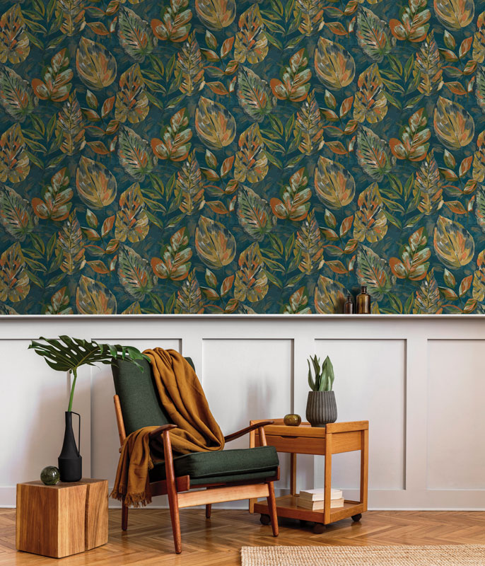 O tema natureza é tendência para decorar e está sempre na moda, e o desenho de folhas tropicais é uma das opções para renovar a parede com protagonismo e beleza, deixe sua sala de jantar com um ar mais fresco e relaxante destacando uma das paredes com este papel de alta qualidade.